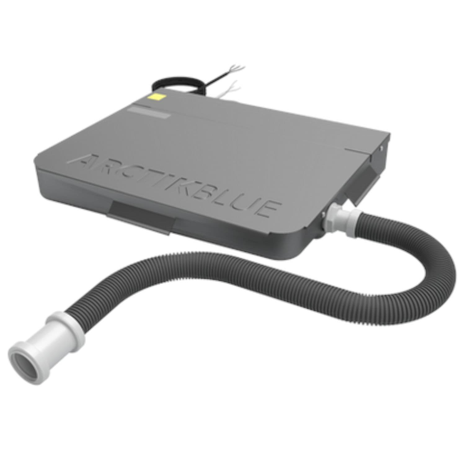 The ArctikBlue® is designed to collect, filter and pump condensate water from refrigeration units during daily operation and defrost cycles. The rotary diaphragm pump provides a quiet, reliable and self priming operation. Incorporating a low profile dairy pump into the design of a cabinet gives the advantage of additional refrigerated retail space.
